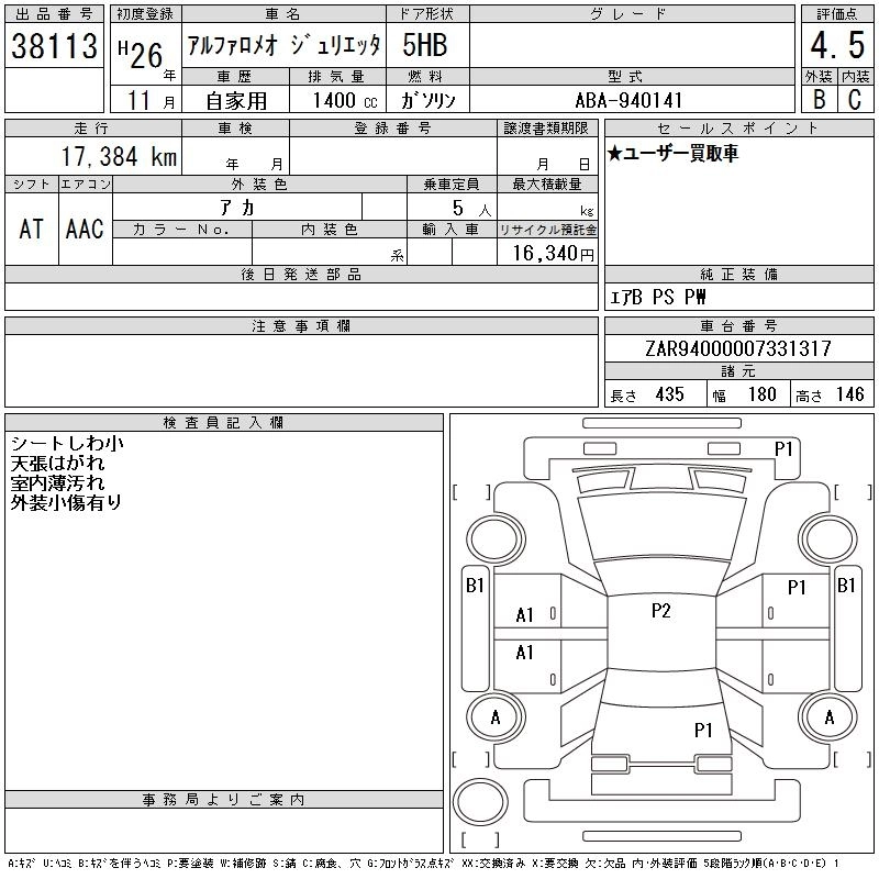 ALFA ROMEO GIULIETTA 2014 г., лот № 38113