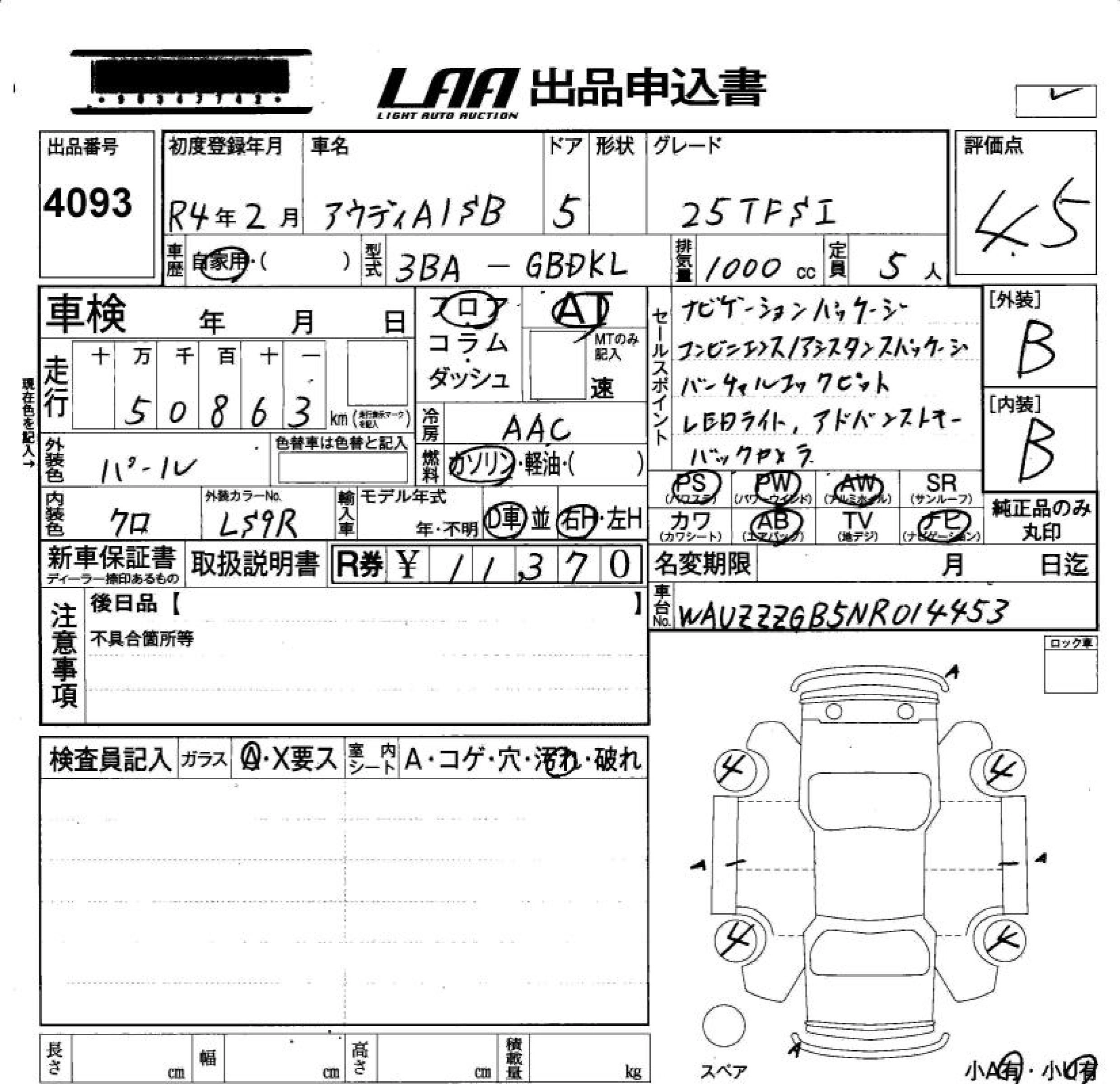 Статус продан Лот 4093 Аукцион LAA Okayama Дата аукциона 23.01.2026