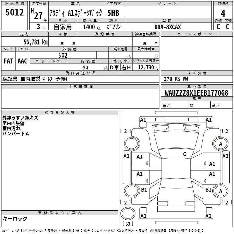 AUDI A1 SPORTBACK 2015 г., лот № 5012