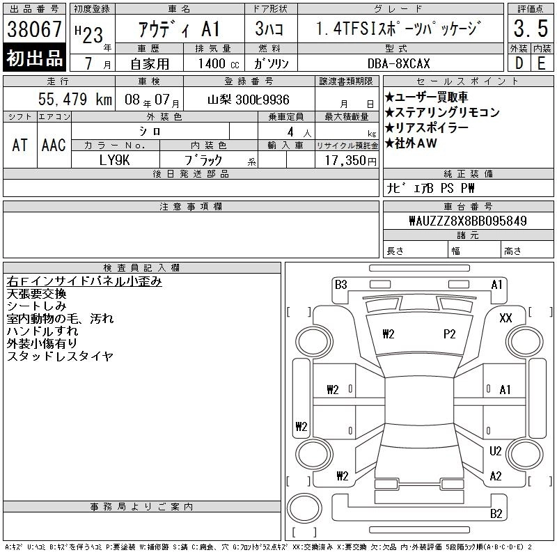 AUDI A1 2011 г., лот № 38067