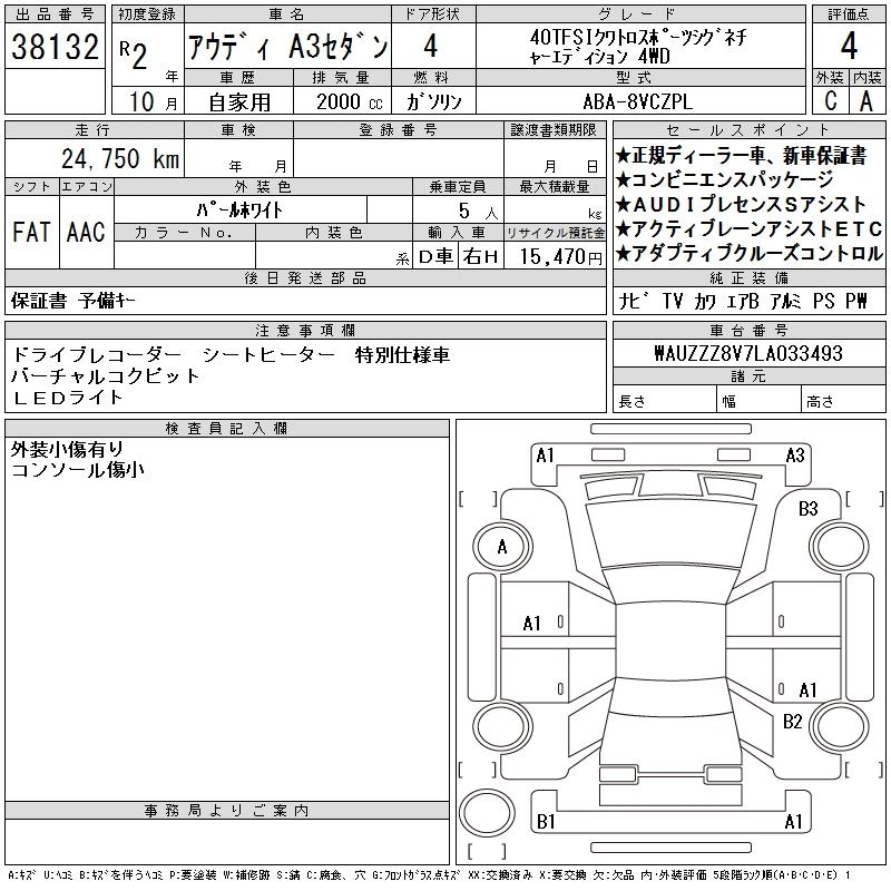 AUDI A3 SEDAN 2020 г., лот № 38132