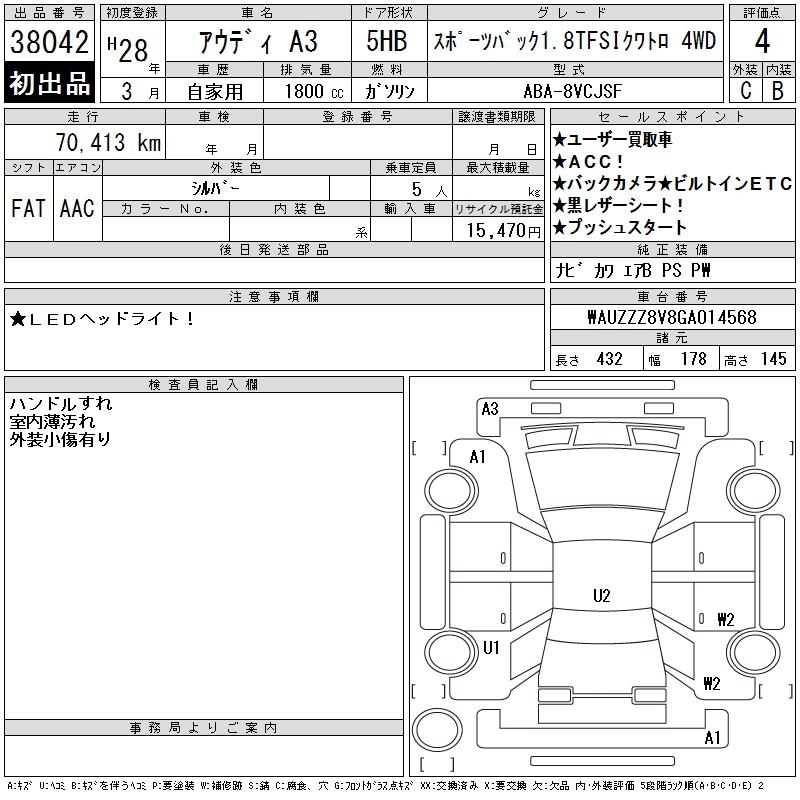AUDI A3 2016 г., лот № 38042