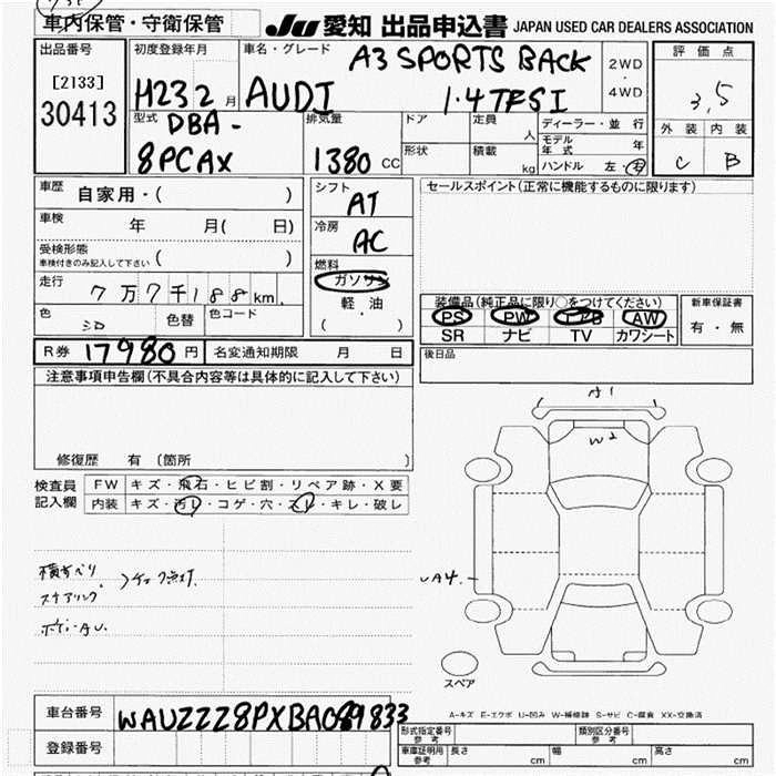AUDI A3 2011 г., лот № 30413