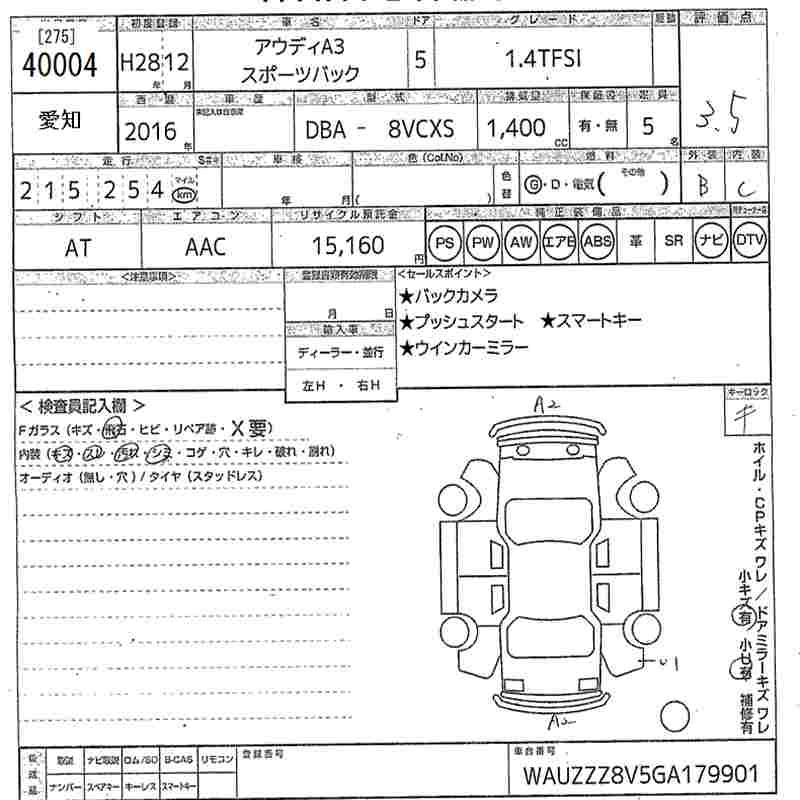 AUDI A3 2016 г., лот № 40004