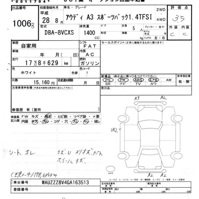 AUDI A3 2016 г., лот № 1006