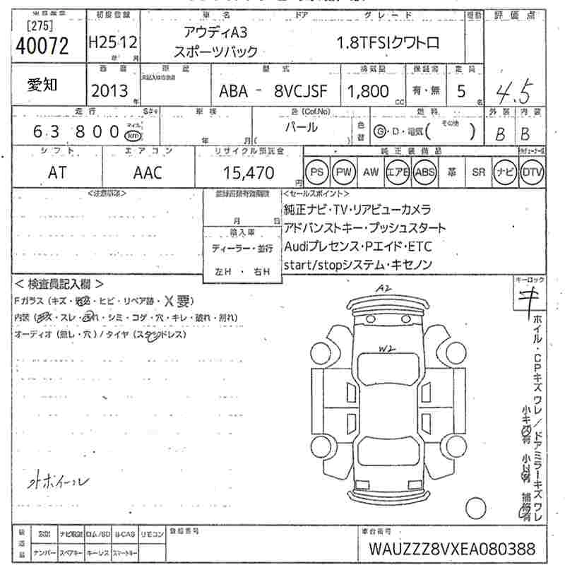 AUDI A3 2013 г., лот № 40072