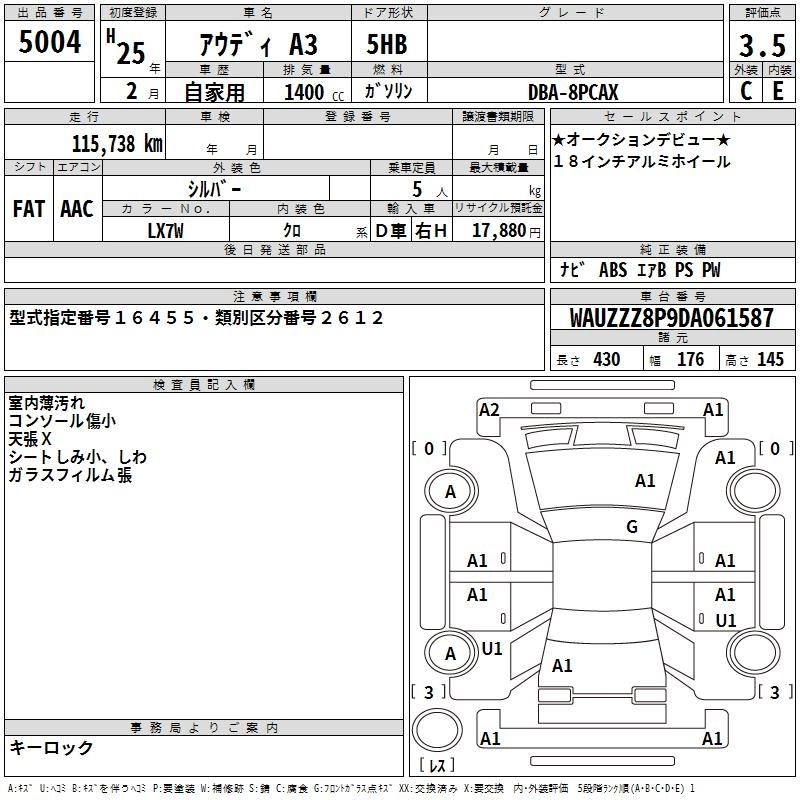 AUDI A3 2013 г., лот № 5004
