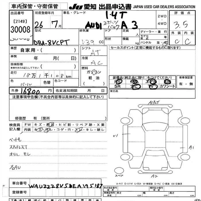 AUDI A3 2014 г., лот № 30008