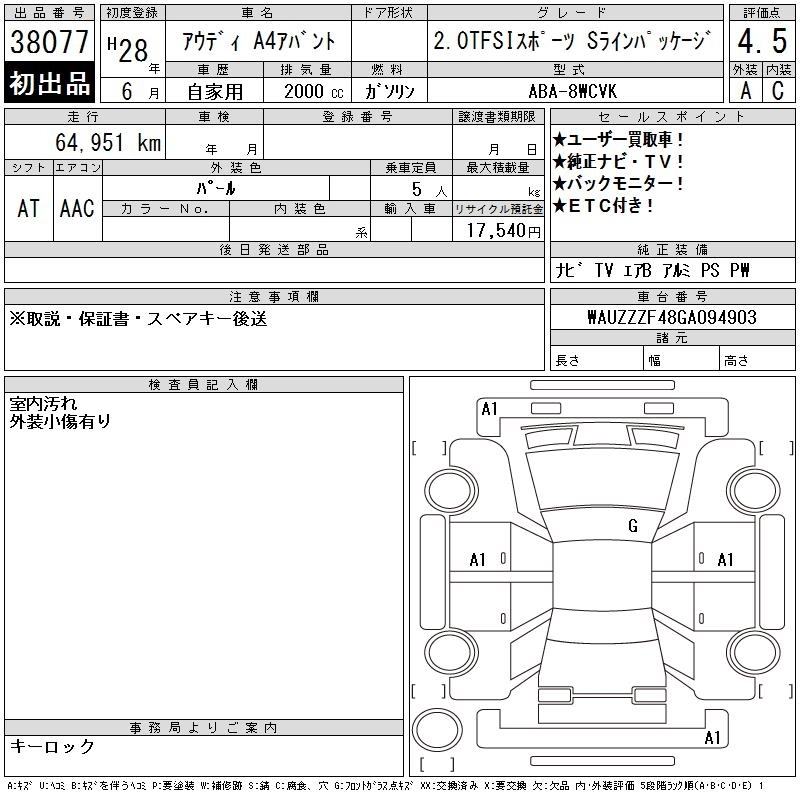 AUDI A4 AVANTE 2016 г., лот № 38077
