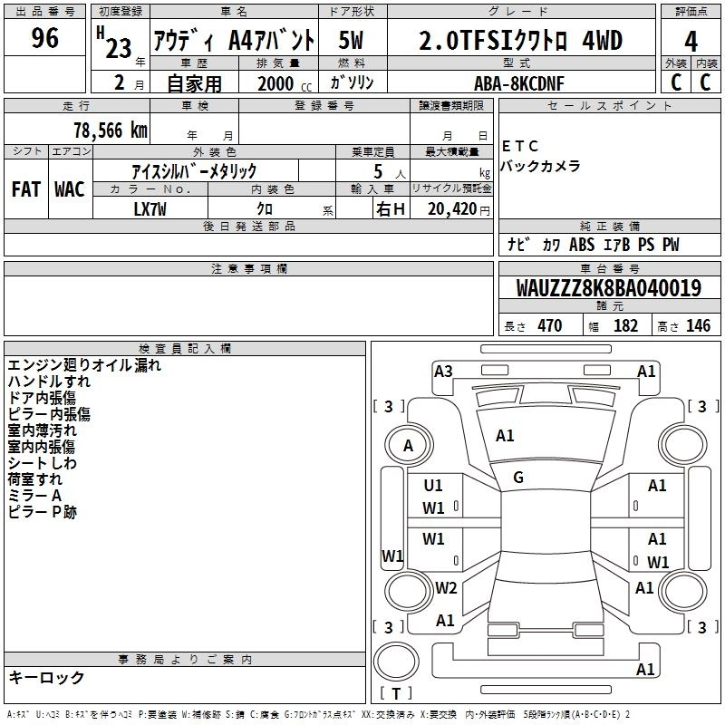 AUDI A4 AVANTE 2011 г., лот № 96