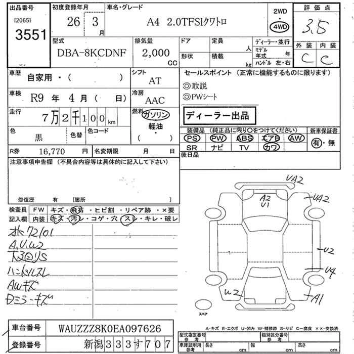 AUDI A4 2014 г., лот № 3551