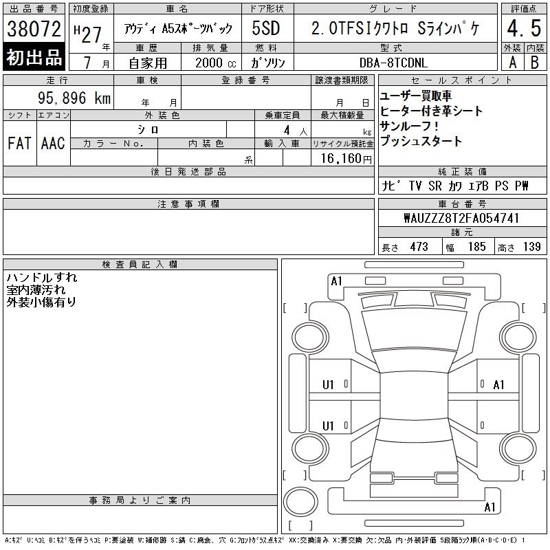 AUDI A5 SPORTBACK 2015 г., лот № 38072