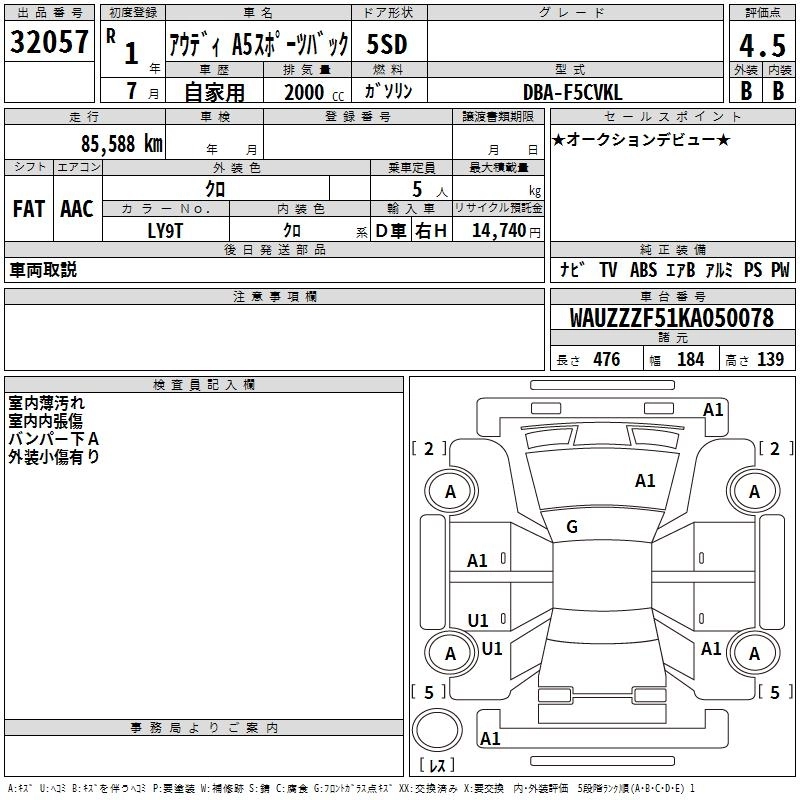 AUDI A5 SPORTBACK 2019 г., лот № 32057
