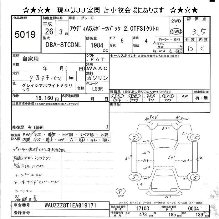 AUDI A5 SPORTBACK 2014 г., лот № 5019