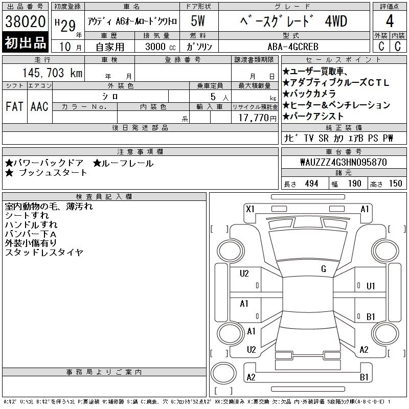 AUDI A6 ALLROAD QUATTRO 2017 г., лот № 38020
