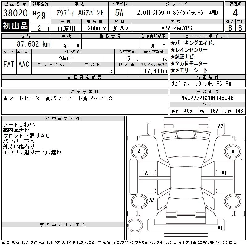 AUDI A6 AVANTE 2017 г., лот № 38020