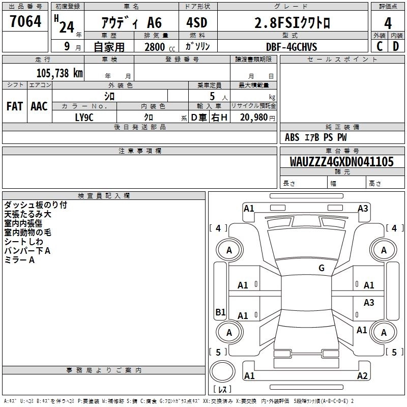 AUDI A6 2012 г., лот № 7064