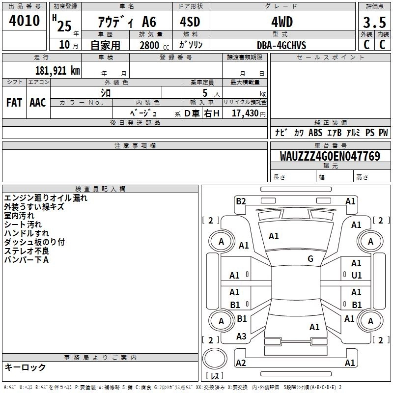 AUDI A6 2013 г., лот № 4010
