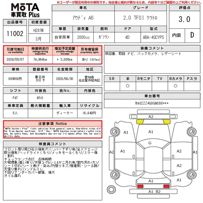 AUDI A6 2016 г., лот № 11002