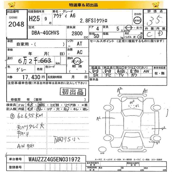 AUDI A6 2013 г., лот № 2048