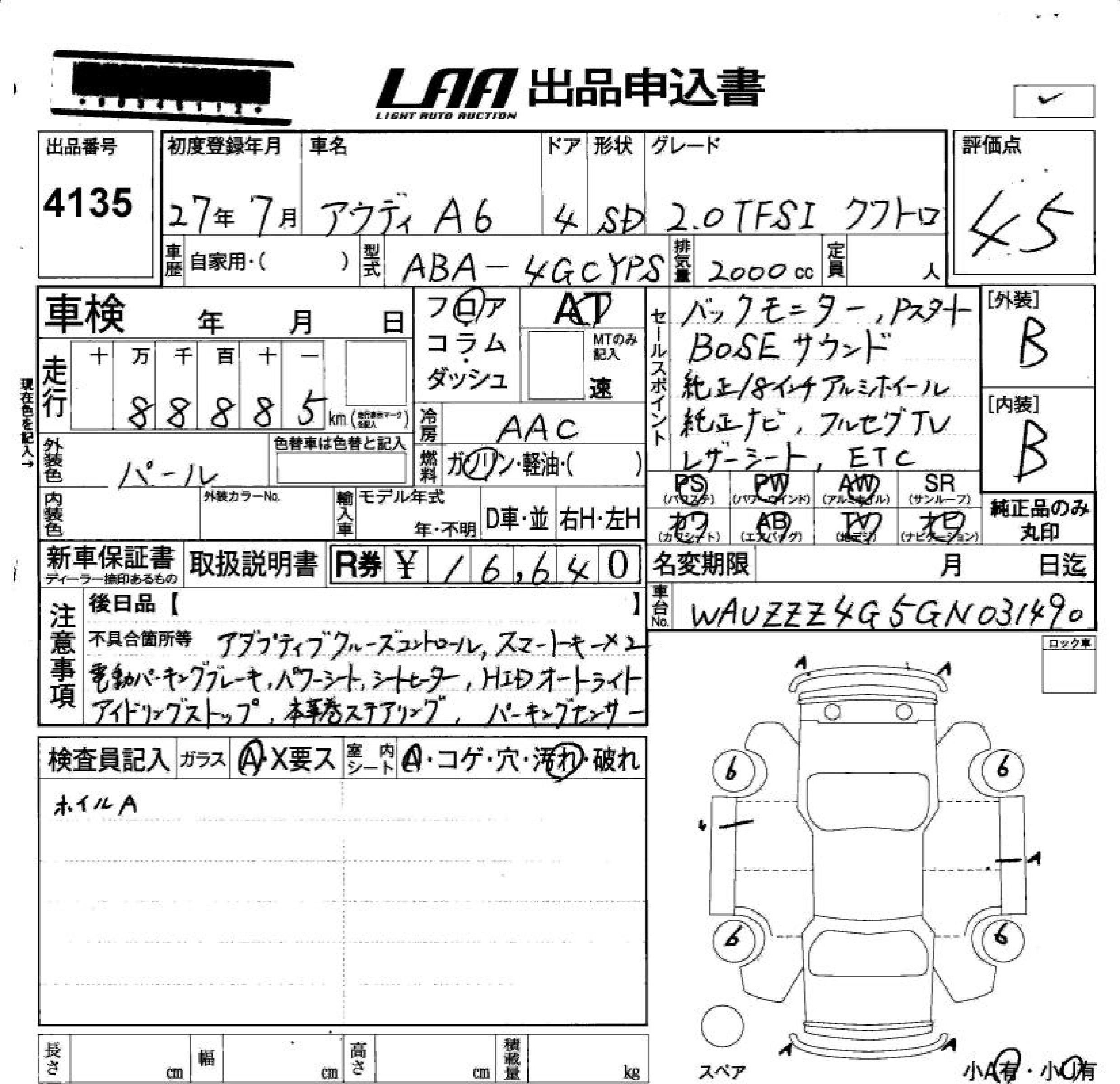 AUDI A6 2015 г., лот № 4135