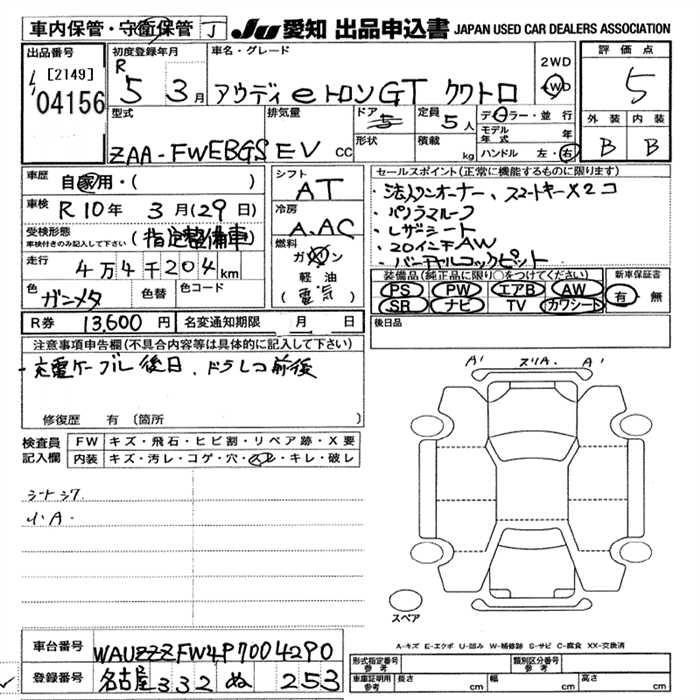 Статус выставлен на аукцион Лот 4156 Аукцион JU Aichi Дата аукциона 12.03.2026