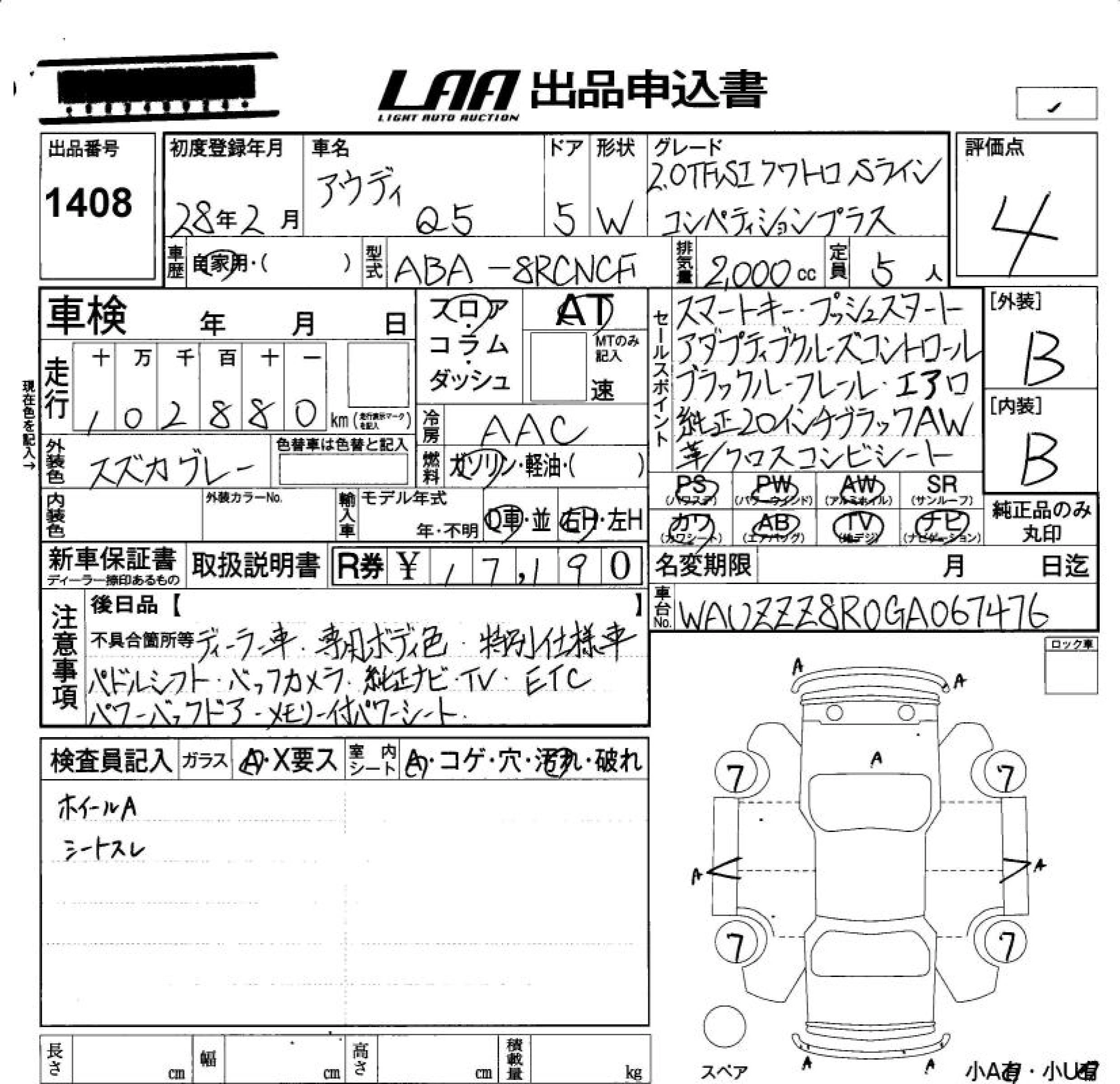 AUDI Q5 2016 г., лот № 1408