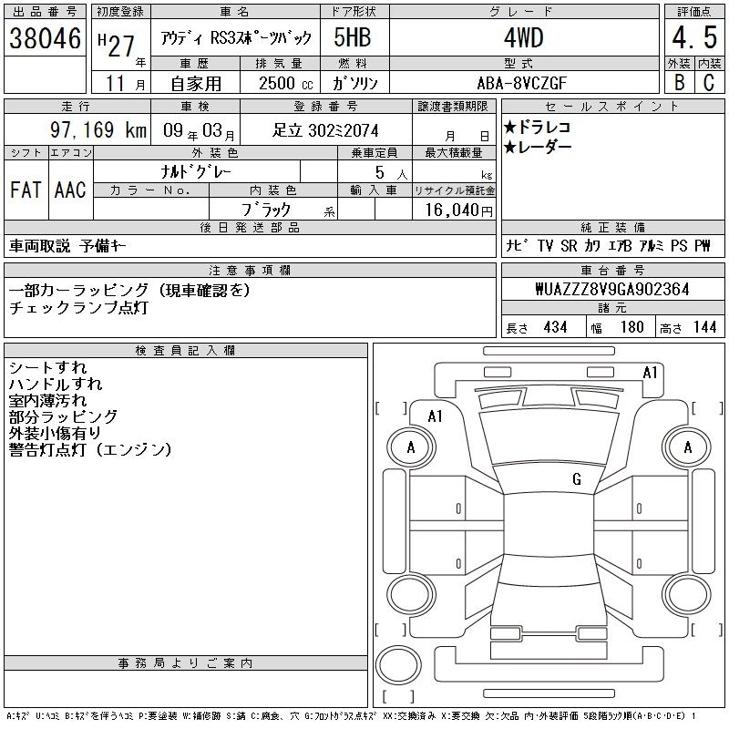 AUDI RS3 SPORTBACK 2015 г., лот № 38046