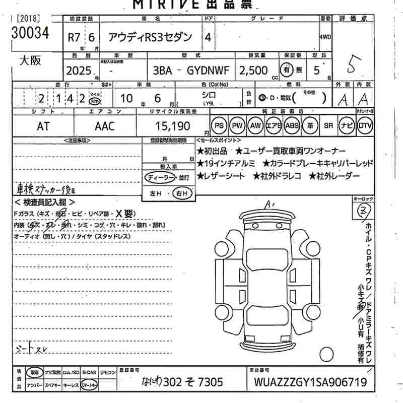 Статус выставлен на аукцион Лот 30034 Аукцион MIRIVE Osaka Дата аукциона 12.03.2026