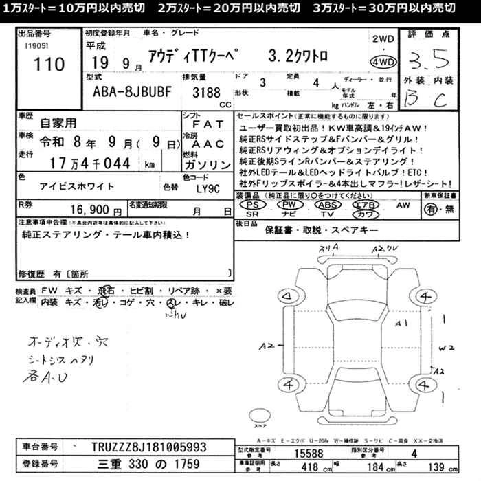AUDI TT 2007 г., лот № 110