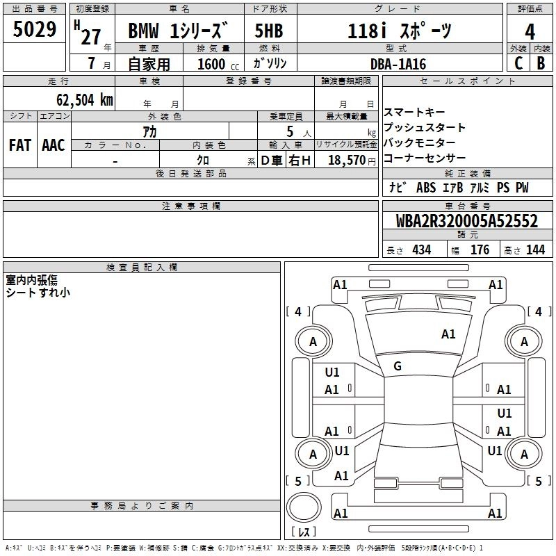 BMW 1 SERIES 2015 г., лот № 5029