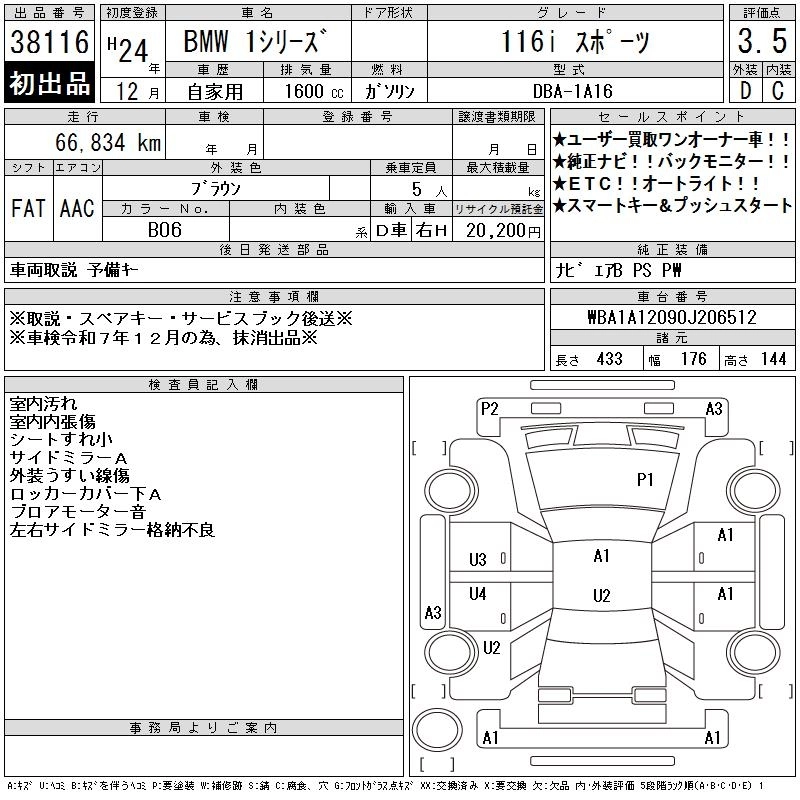 BMW 1 SERIES 2012 г., лот № 38116