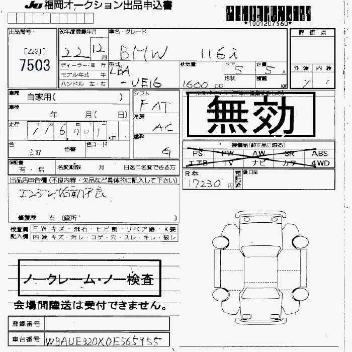 Статус продан Лот 7503 Аукцион JU Fukuoka Дата аукциона 23.01.2026
