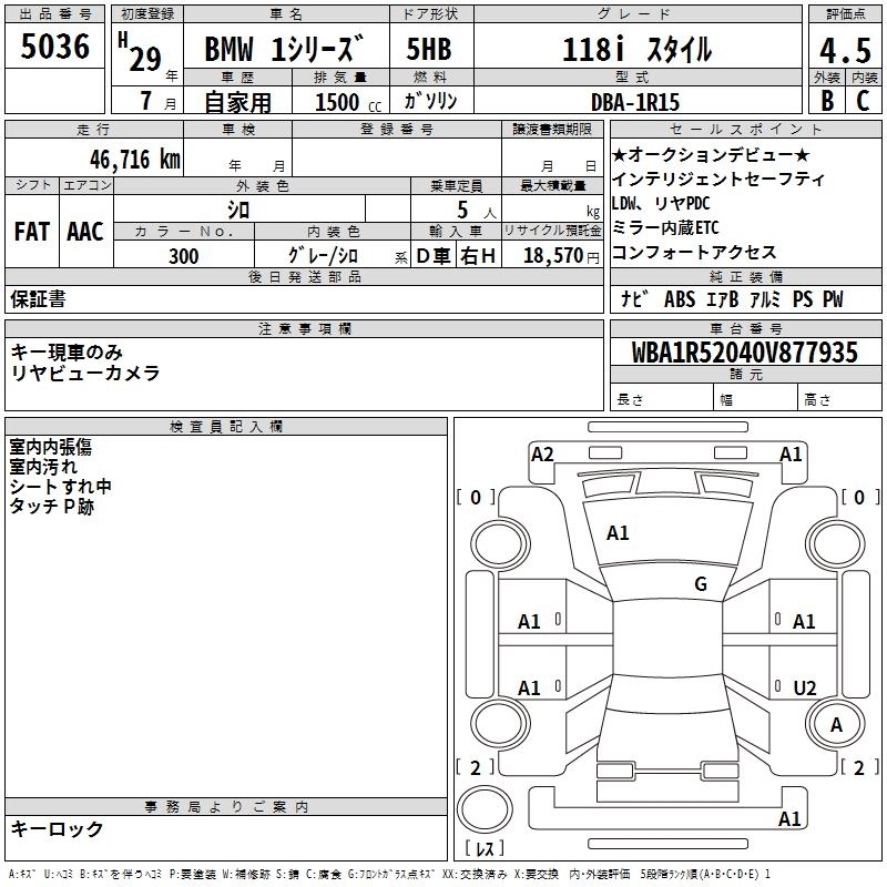 BMW 1 SERIES 2017 г., лот № 5036