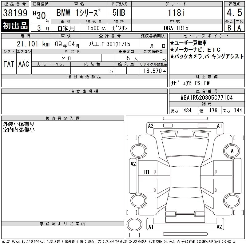 BMW 1 SERIES 2018 г., лот № 38199