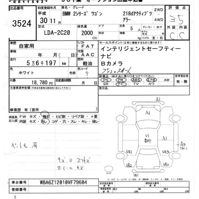 BMW 2 SERIES 2018 г., лот № 3524