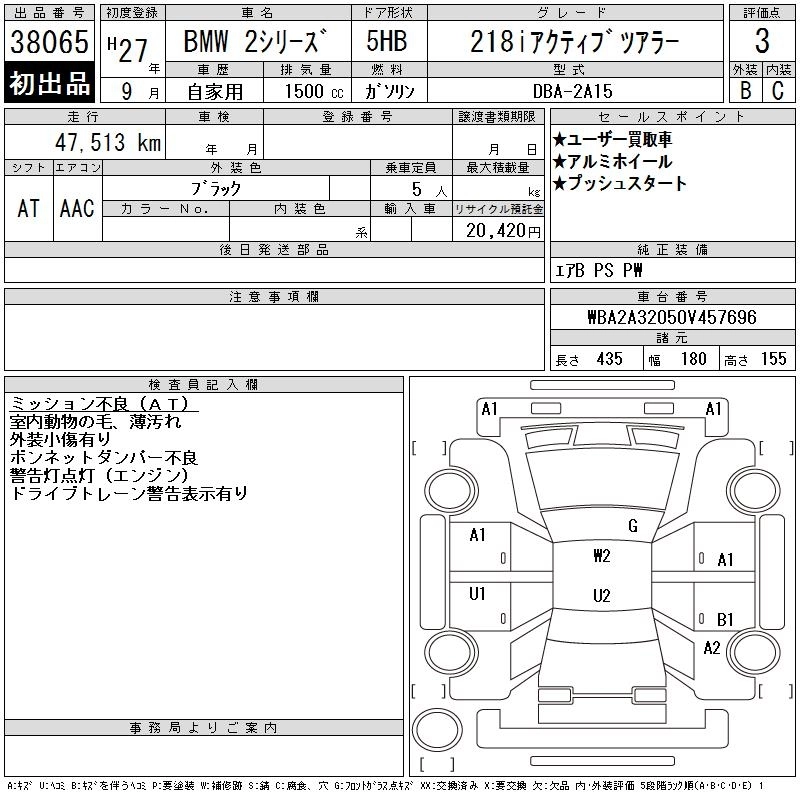 BMW 2 SERIES 2015 г., лот № 38065