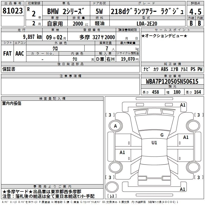 BMW 2 SERIES 2020 г., лот № 81023