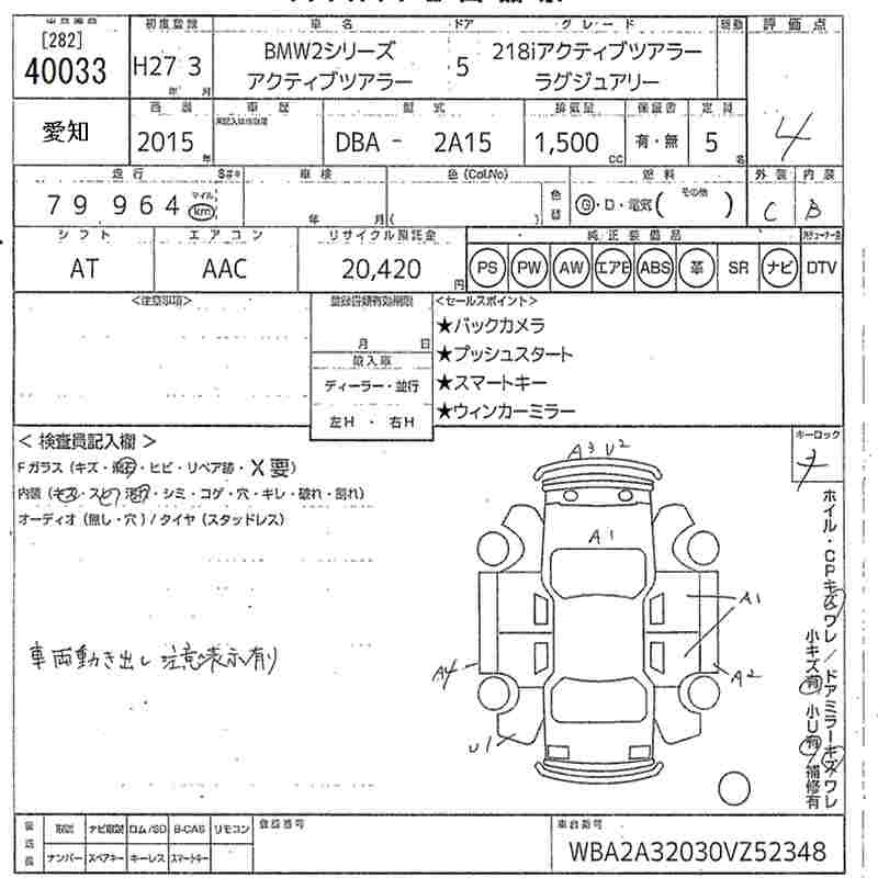 BMW 2 SERIES 2015 г., лот № 40033