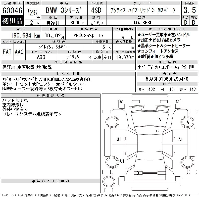 Год выпуска2014 Пробег 191 000 км Кузов3F30 Комплектация ACTIVE HYBRID 3 M SPOILER