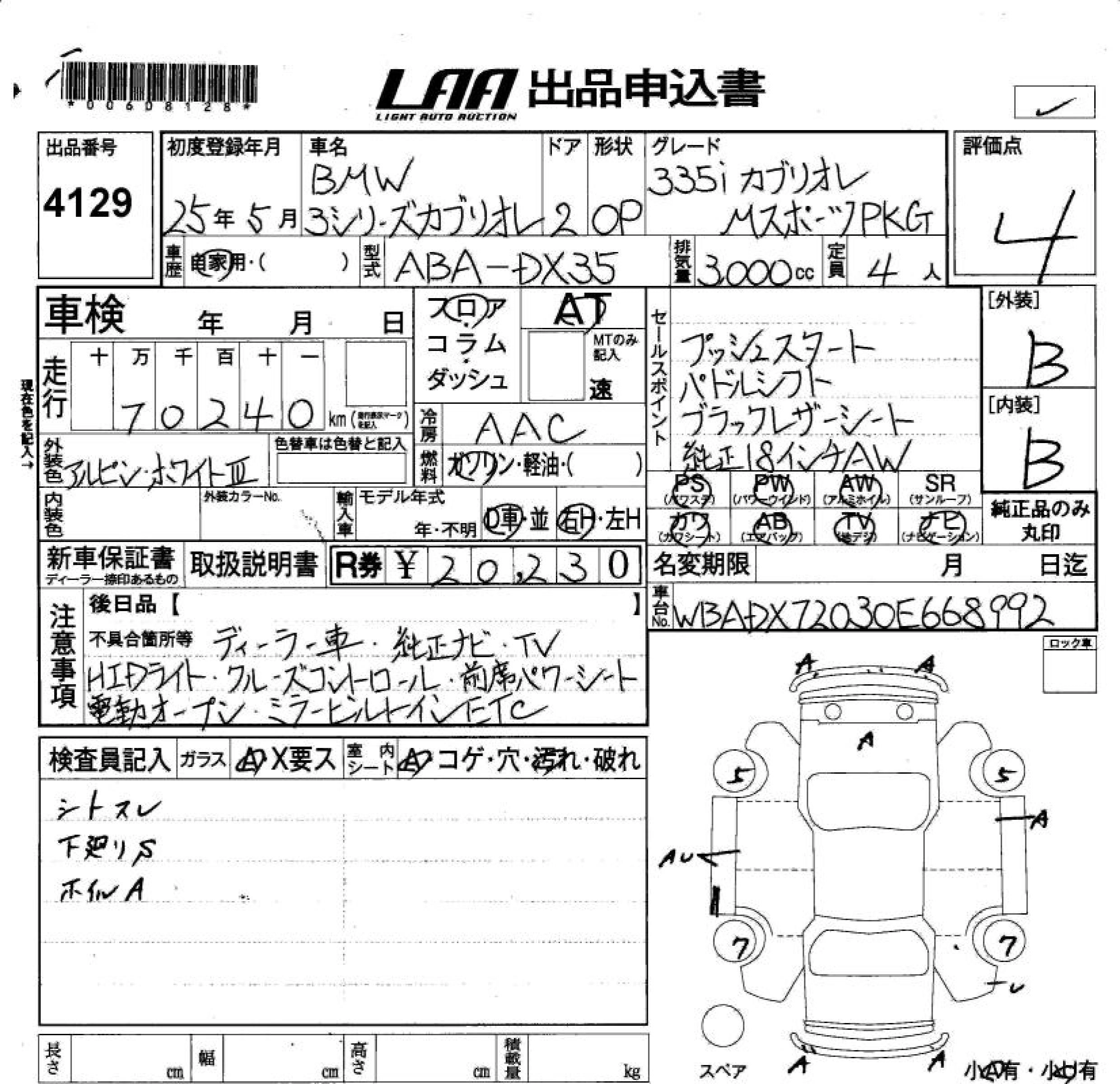 BMW 3 SERIES 2013 г., лот № 4129