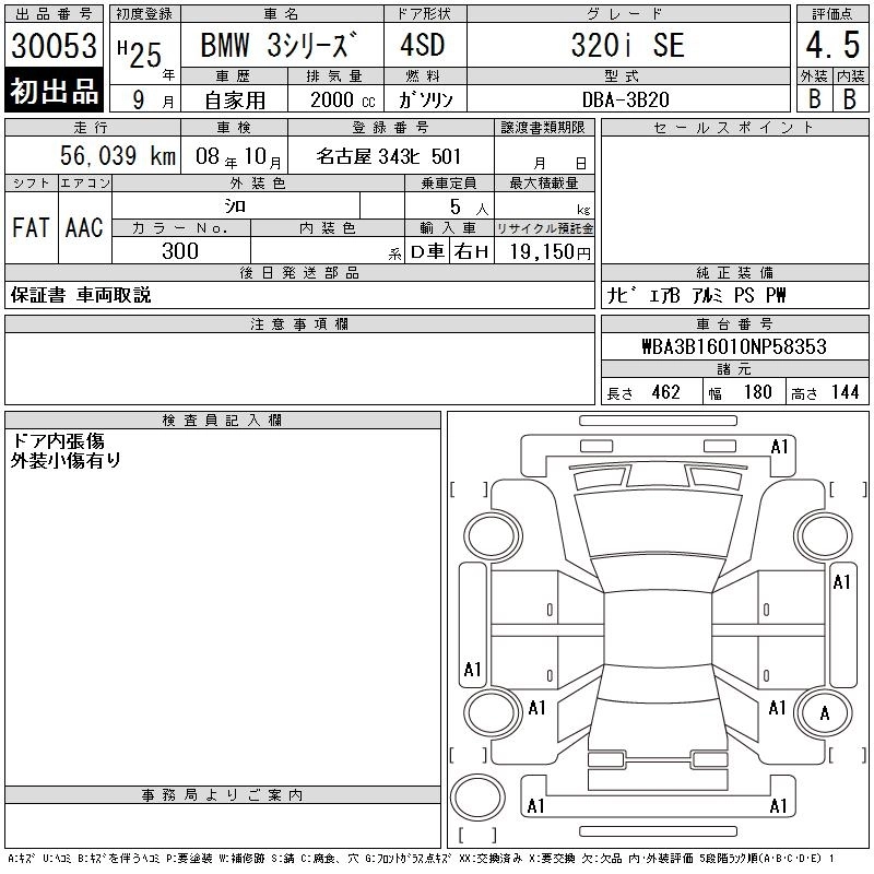 BMW 3 SERIES 2013 г., лот № 30053