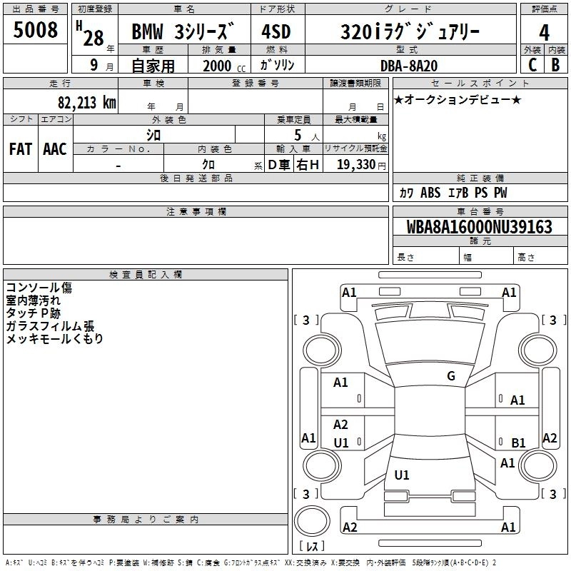 BMW 3 SERIES 2016 г., лот № 5008
