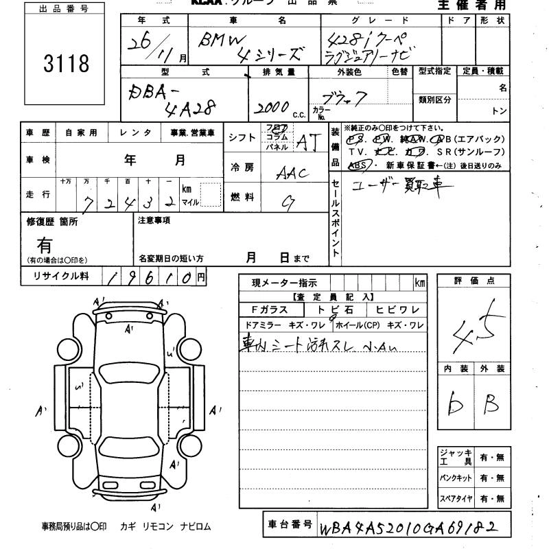 BMW 4 SERIES 2014 г., лот № 3118