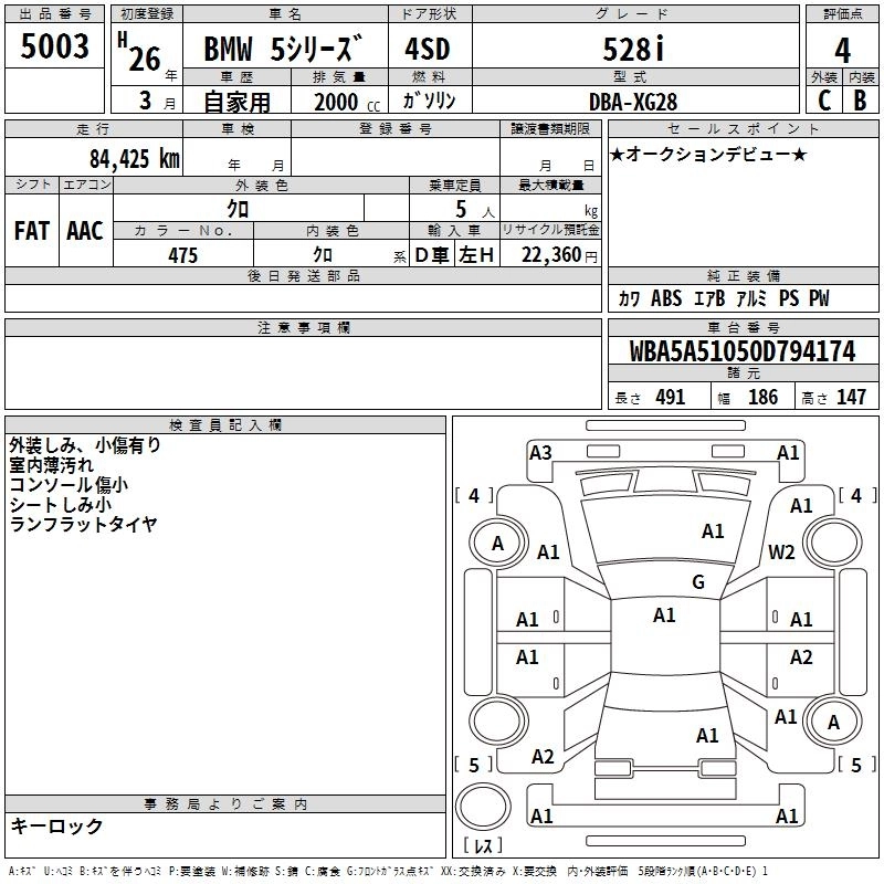 BMW 5 SERIES 2014 г., лот № 5003