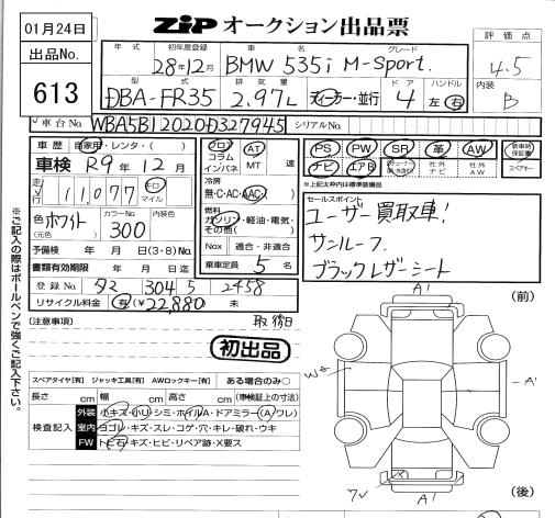 BMW 5 SERIES 2016 г., лот № 613