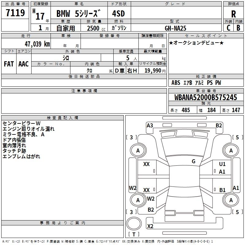 BMW 5 SERIES 2005 г., лот № 7119