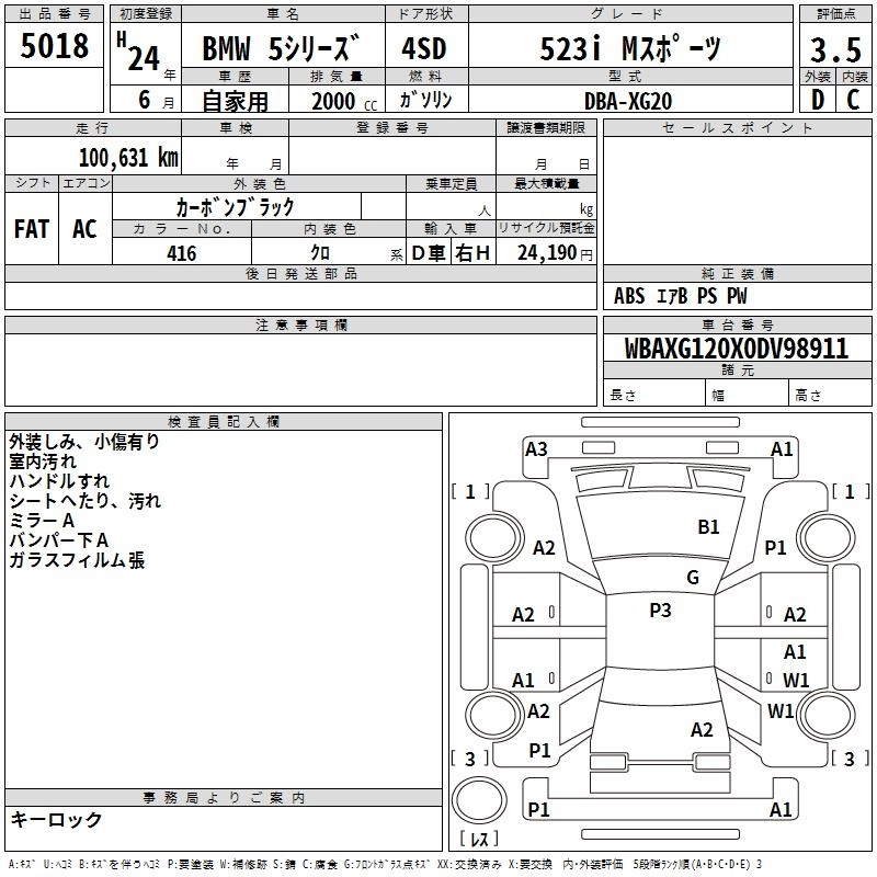Год выпуска2012 Пробег 101 000 км КузовXG20 Комплектация523I M SPORT
