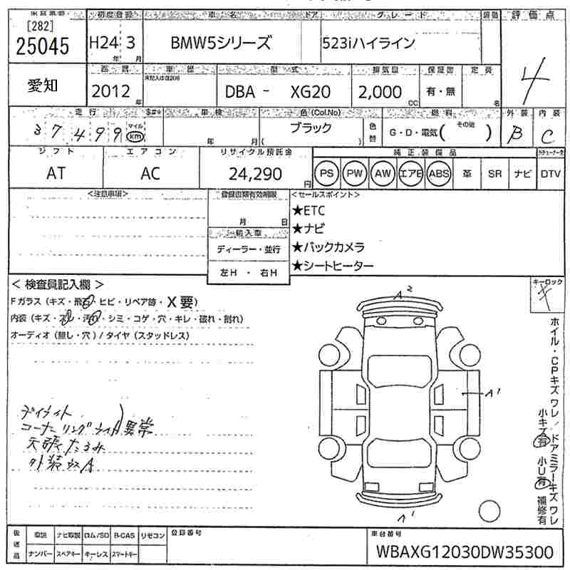 BMW 5 SERIES 2012 г., лот № 25045