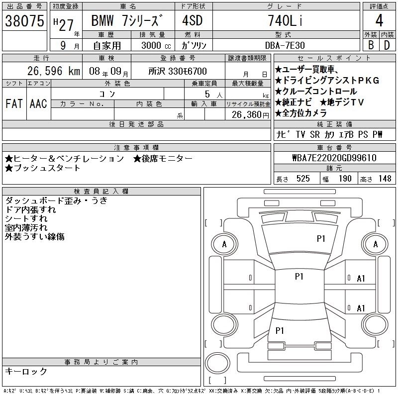 BMW 7 SERIES 2015 г., лот № 38075